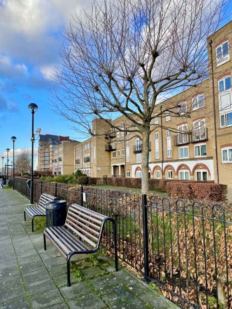 Wszędzie na trasie czekają na spacerowiczów wygodne ławeczki, z których można kontemplować widoki i nadbrzeżne pejzaże. Ten malowniczy fragment Londynu zwie się mało romantycznie Wyspą Psów (Isle of Dogs). I choć nie wiadomo skąd nazwa ta pochodzi (psów jest tu mniej więcej tyle samo co wszędzie w Londynie) to po drodze do Greenwich (do którego wciąż zmierzamy) mamy okazję zobaczyć kilka malowniczych pozostałości z dawnej historii tej wyspy. A właściwie dużego półwyspu opasanego z trzech stron meandrem Tamizy, który wyspą jest tylko z nazwy.