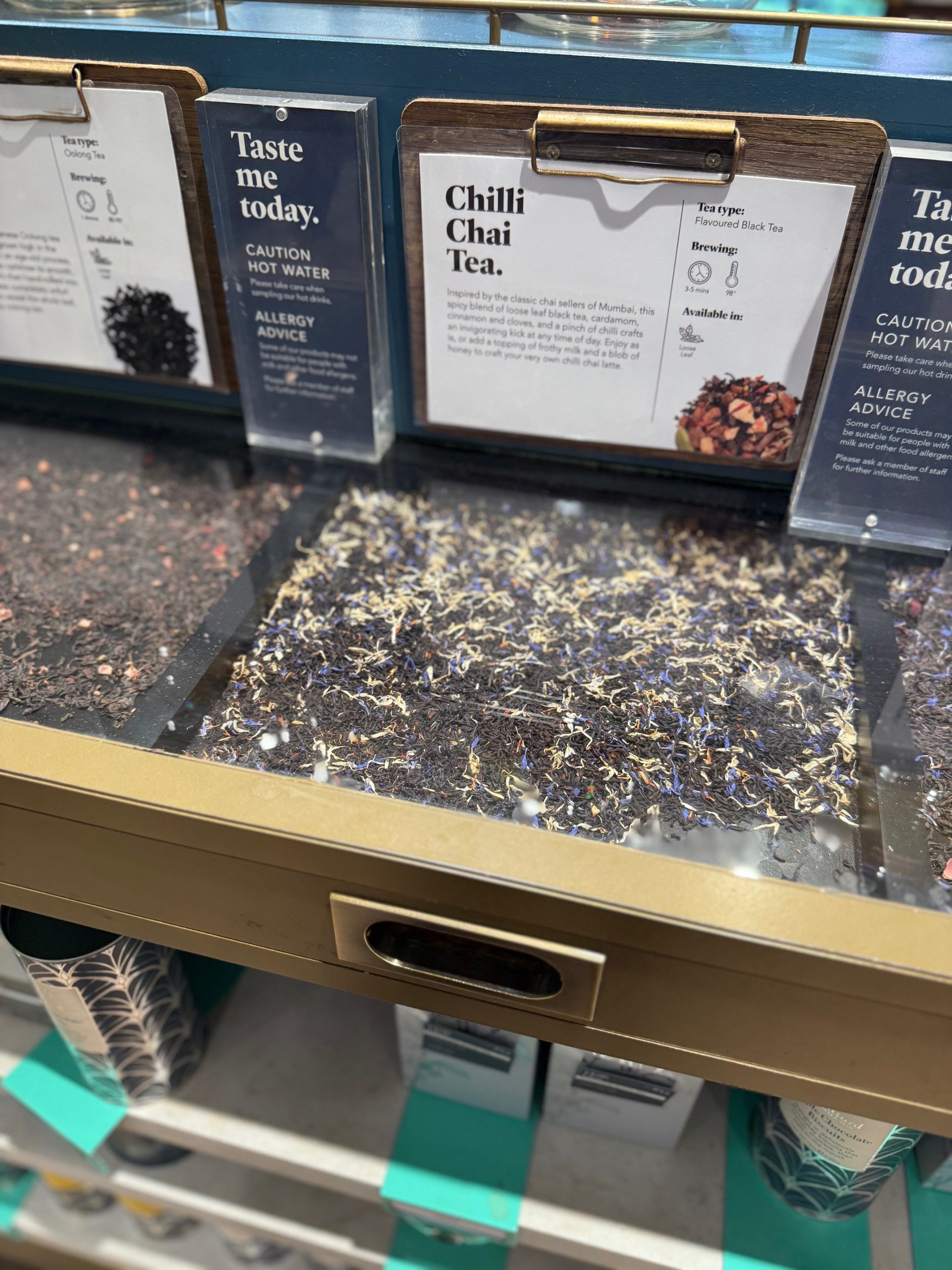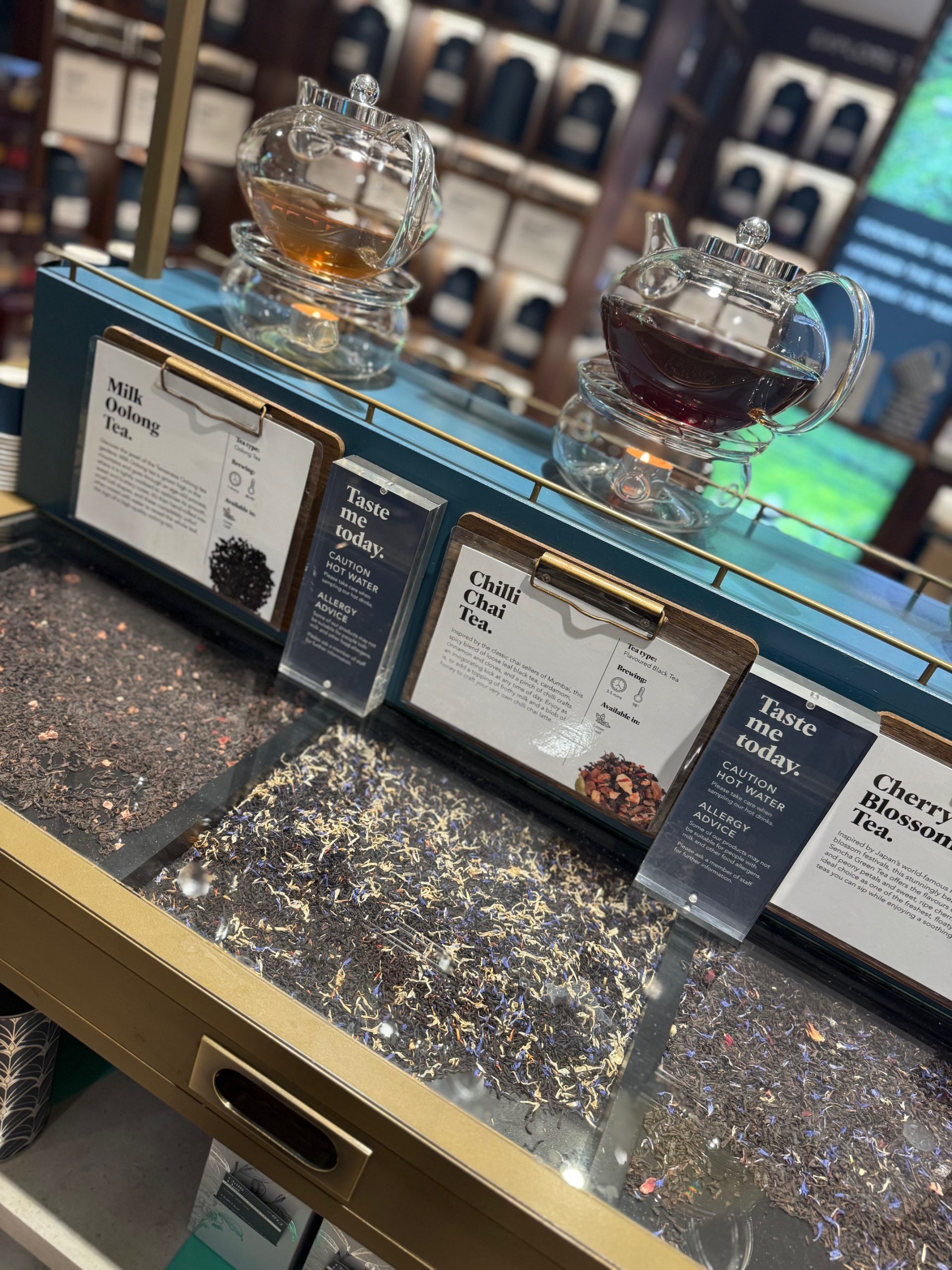Z jednej strony staje w szranki TWG Tea. Luksus. Złoto. Elegancja. Słoje z herbatą ustawione jak drogocenne klejnoty. Wchodząc tam, czuję się trochę jak w perfumerii dla smakoszy – każda mieszanka ma swoją historię, nazwę, nuty smakowe jak w katalogu haute couture.